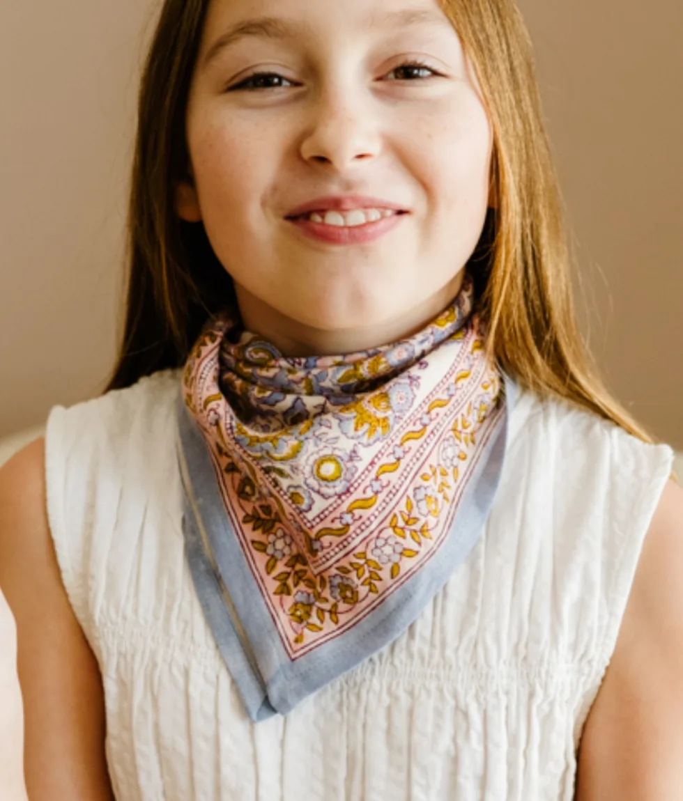 Ce foulard enfant bleuet séduit par ses teintes douces et son imprimé artisanal. Facile à assortir, il accompagne les looks du quotidien et se porte aussi bien en foulard qu’en bandeau ou en accessoire de sac.